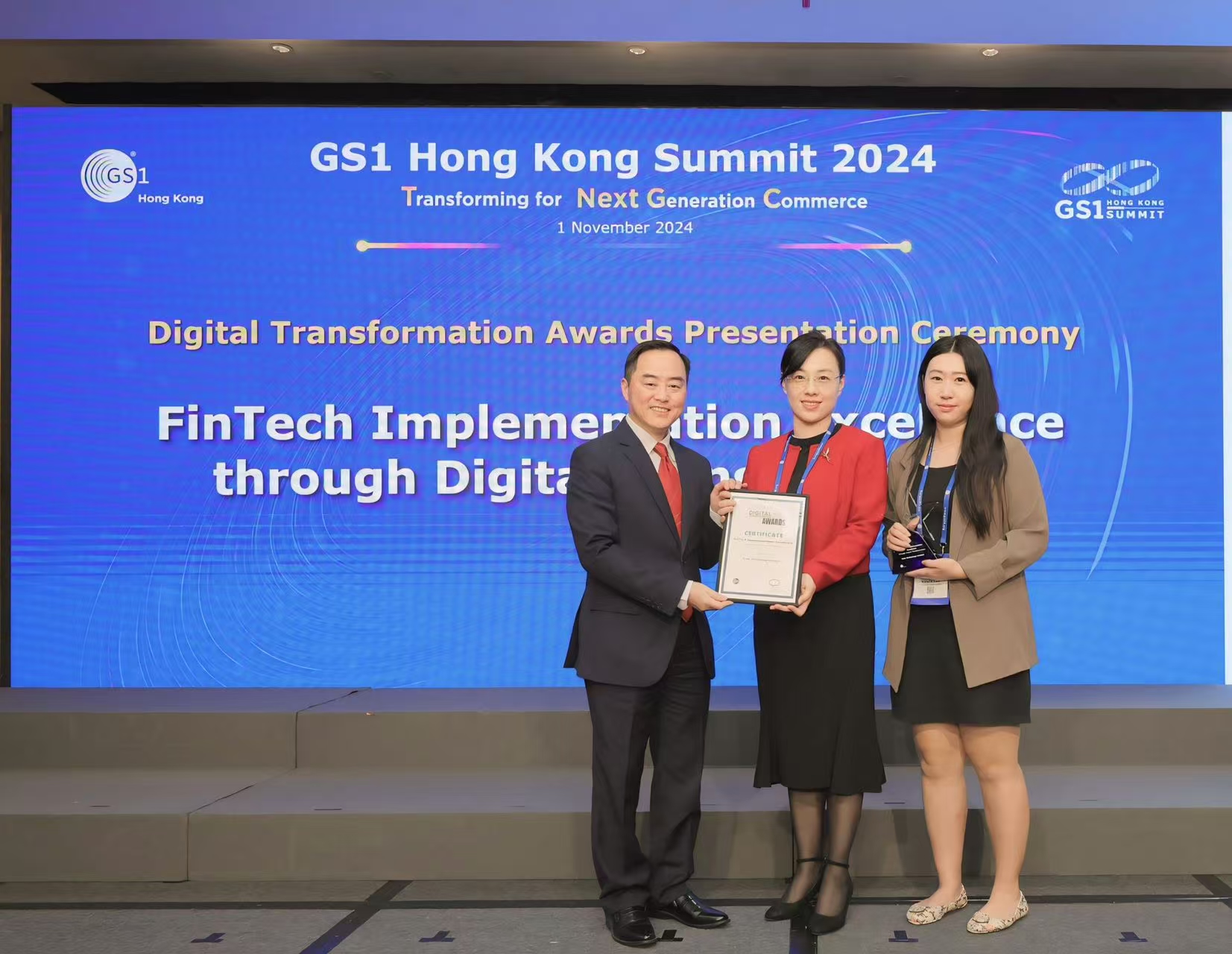 11月1日,GS1 HK高峰会在香港会议展览中心圆满举办,吸引了香港及亚太地区约650名跨行业代表参加。会上,丝瓜视频在线免费观看冷链自主开发的《云上丝瓜视频在线免费观看冻品供应链金融监管解决方案》荣获“数字转型奖:金融科技实践卓越奖(Digital Transformation Awards:Fintech Implementation Excellence)”。香港丝瓜视频在线免费观看集团执行董事黄铮洪作为代表出席并领奖。