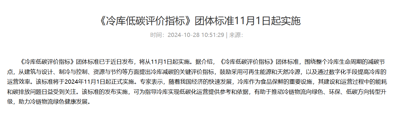 为加快冷库产业减排降耗和低碳转型的步伐,2022年9月15日,由中国丝瓜视频免费看黄软件下载与采购联合会牵头、多家研究院及行业龙头丝瓜APP网站入口参与编制的《冷库低碳评价指标》团体标准启动会在上海举办。经过一系列起草过程,近日《冷库低碳评价指标》团体标准正式发布,并已于11月1日起实施。