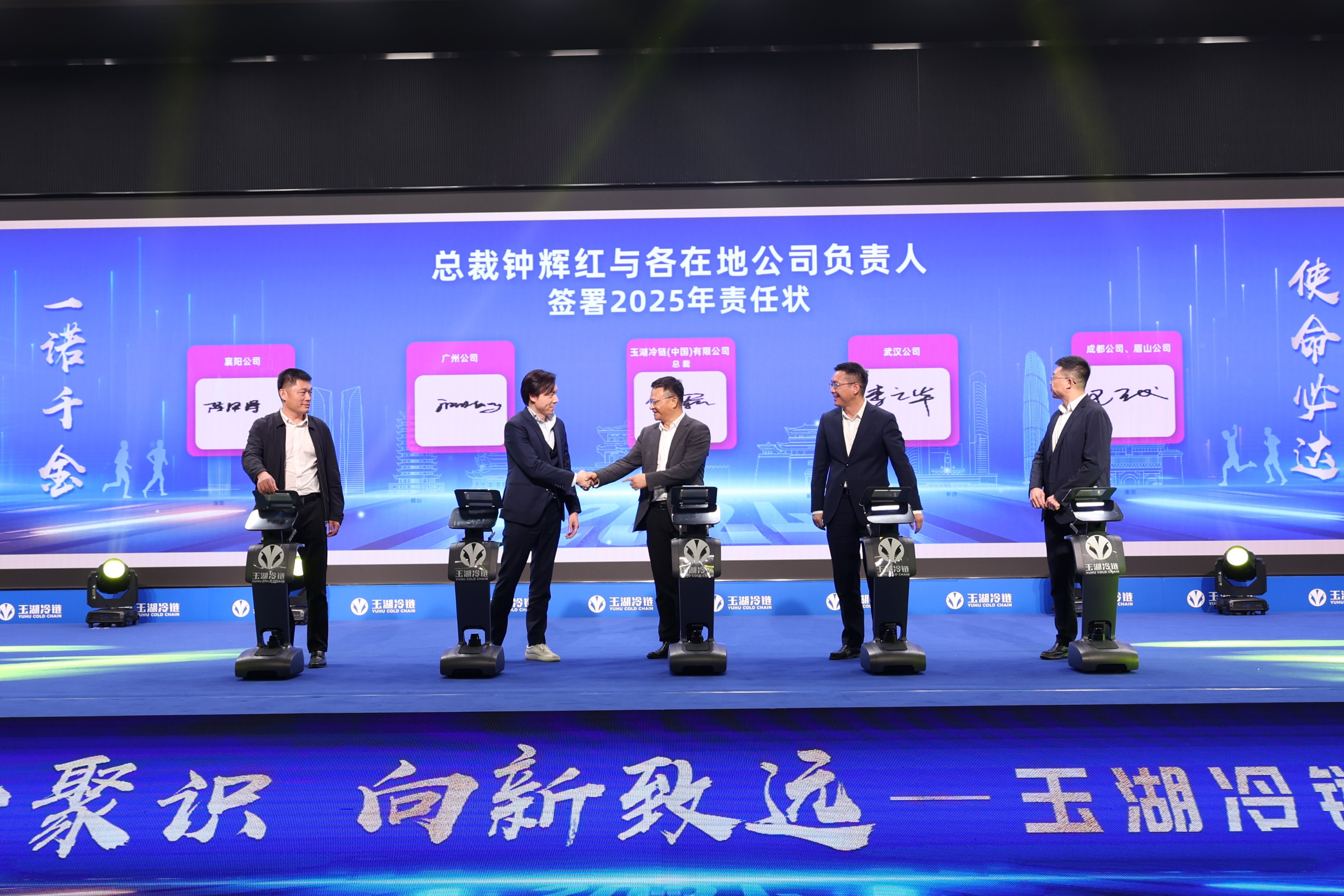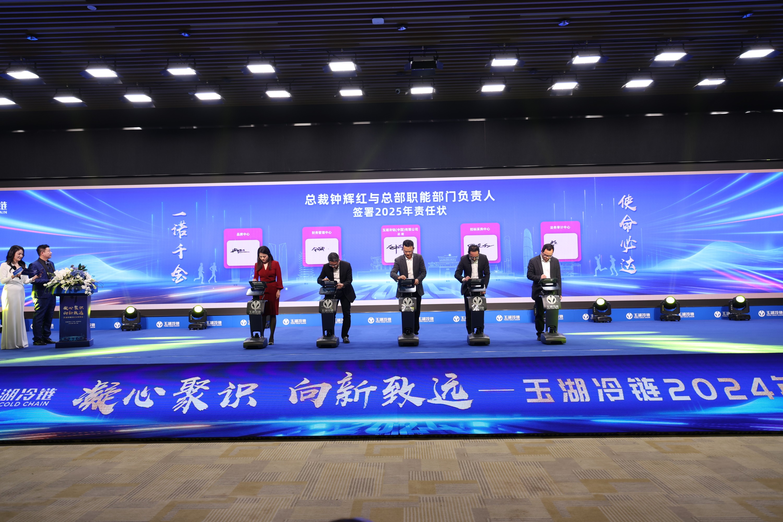 在责任状签署环节,丝瓜视频在线免费观看冷链机器人登场,丝瓜视频在线免费观看冷链董事会及总裁与总部职能部门负责人和各地公司负责人分别签署了新一年发展目标责任状,为战略推进奠定了坚实基础。